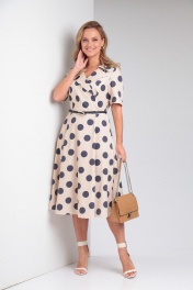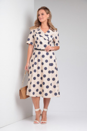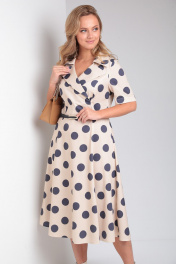 Платье летнее из хлопка с разрезом и поясом AMORI 9796 бежевый