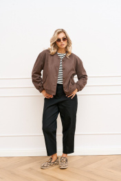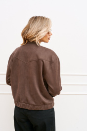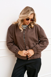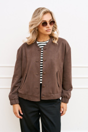 Демисезонный женский бомбер из замши и вискозы с воротником-стойкой AMUARt 1025 мокко