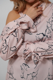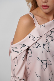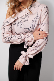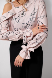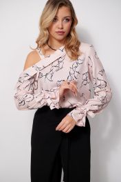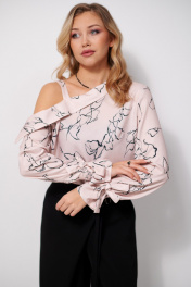 Блуза из текстиля с асимметричным рукавом и воротником AMUARt 1030 пудровый