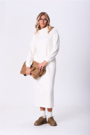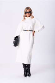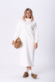 Платье женское из трикотажного полотна прямого силуэта длинной миди. Полочка и спинка цельнокроеные. Линия плеча спущена, рукав втачной по низу притачная манжета. В боковых швах для удобства обработан карман. Горловина обработана мягким воротником-стойкой.