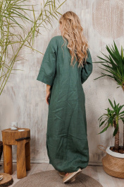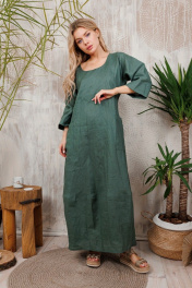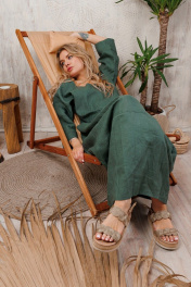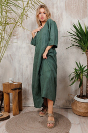 Леновое платье АМУЛЕТ с юбкой-тюльпан длина макси АМУЛЕТ 9702 изумруд