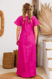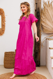 Розовое платье из льна с карманами и внутренней складкой АМУЛЕТ 9724 фуксия