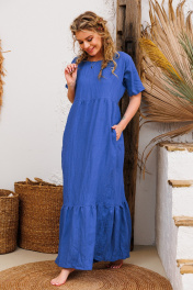 Платье синее летнее из льна и текстиля АМУЛЕТ 9735 яркий_василёк