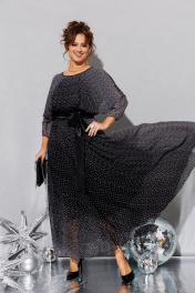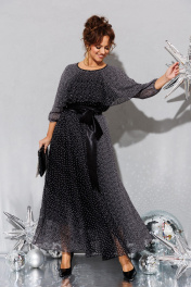 Платье нарядное шифоновое с пелериной и капельным вырезом Anastasia 063.1 черно-серый
