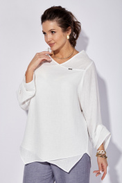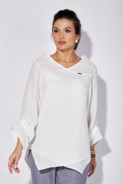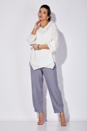 Комплект блузка и брюки прямого силуэта с запахом лето Anastasia 1101 белый/голубой