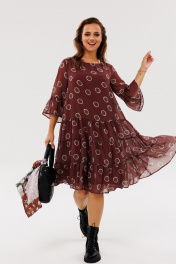 Платье из шифона с рукавом 3/4 и florальным принтом Anastasia 1110 шоколад
