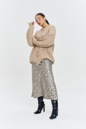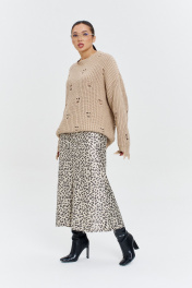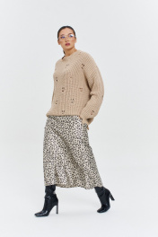 Атласная юбка миди с резинкой и трапециевидным силуэтом Anastasia 1151 платина