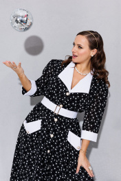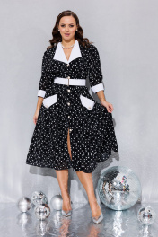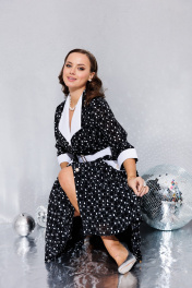 Бренд белорусской женской одежды больших размеров Anastasia представляет красивое, дизайнерское, воздушное платьев романтичном стиле для женщин плюс сайз. Платье выполнено из качественной турецкой вискозы 100% в горошек, с отложным белым воротником и пуговицами, дополнено поясом из ткани с использованием качественной фурнитуры. Приталенный силуэт с юбкой солнце, v образный вырез, необычный дизайн, трендовая модель, прекрасная посадка, качественный пошив и материалы позволят вам наслаждаться комплиментами окружающих людей не один сезон. Прекрасно подходит на Новый год, для отдыха на морском курорте, городских летних прогулок, фотосессий и конечно юбилея. В этом платье вы будете центром внимания в любой компании. Идеальное яркое платье со стильным принтом для романтичных женщин. Благодаря женственному силуэту и роскошной юбке макси вы будете всегда ощущать себя красивой и модной. Каждое наше изделие выполнено на нашем производстве, мы тщательно подходим к отбору наших тканей, фурнитуры и выбираем для Вас только самое лучшее. Качественный крой, идеальная посадка и материалы класса люкс обеспечат комфорт в течение всего дня. Мы гарантируем оригинальность модельных решений, использование только натуральных материалов и, конечно, великолепный подбор дорогих и редких тканей. Бренд разрабатывает авторские принты, которые используются при пошиве эксклюзивной линии платьев и другой одежды. Все модели от Anastasia – это уникальные изделия, которые выполняются исключительно малыми партиями. Добавьте красоты и изящества в свой гардероб с нашей новой коллекцией! В комплекте съемный пояс. Длина платья: (48-56)- 117 см. Длина рукава: (48-56)-45 см