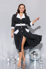 Черное платье с принтом и белым воротником для вечеринок Anastasia 1179 черный(с_принтом)