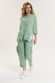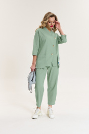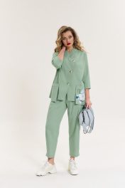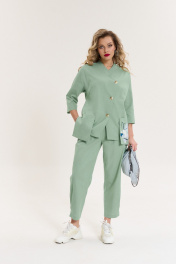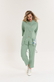 Женский брючный костюм — это идеальное сочетание стиля, комфорта и универсальности, которое станет вашим верным спутником как на деловых встречах, так и при повседневной носке. Изготовленный из высококачественной ткани, этот костюм обеспечивает легкость и приятные ощущения при носке. Костюм женский 2-хпредметный (жакет и брюки). Жакет из текстильной ткани прямого силуэта со спущенным плечом. По полочке идут грудовые выточки из бокового шва. Застежка ассиметричная. Воротник стойка. По спинке встречная складка. Рукав 3/4. По полочке идут отлетные накладные карманы с декором (термонаклейка). Брюки прямые, зауженные к низу за счет защипов. Пояс на резинке, по бокам карманы. Длина спинке:(48-52)-70см, (54-58)- 73см. Длина рукава:(48-58)-33см. Длина брюк (48-50) -93см, (52-58)-95см