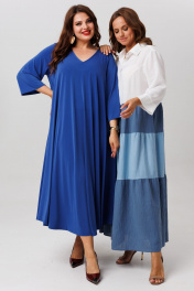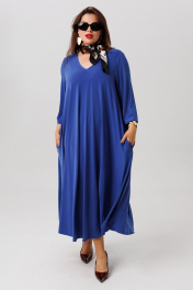 Свободное женское платье А-силуэта -идеальный вариант для офиса, прогулки или праздничного выхода. Достаточно обыграть его подходящими аксессуарами и обувью. Платье подойдет на любую фигуру, сроет все недостатки. Платье женское из трикотажного полотна "масла". Модель расширена к низу, по бокам карманы, рукав 3/4 длины. По полочке и спинке идет V-образный вырез горловины. Длина по спинке (от плечевого шва): 126 см. Длина рукава: 46 см