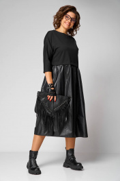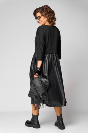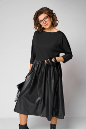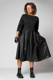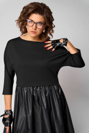 Создайте свой неповторимый образ с этим оригинальным женским платьем от Anastasia! Оно имеет удивительно комфортный крой, который скроет все недостатки фигуры. Идеальный вариант как для повседневной носки, так и для праздничного выхода, достаточно дополнить его соответствущими аксессуарами. Платье женское из двух видов ткани. Платье отрезное по линии талии со сборкой. Рукав 3/4 длины , "летучая мышь". По спинке - средний шов. Благодаря свободному крою платье отлично сядет на любую фигуру. Длина платья (по спинке):(48-52) 115см., (54-58)-120 см. Длина рукава от головины: (48-58)-55см.