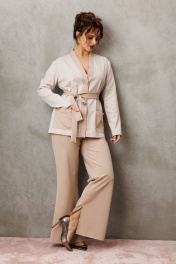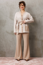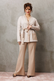 Нежный и комфортный женский комплект в стиле Old money от бренда Anastasia, идеальный для любого случая. Этот комплект сочетает в себе элегантность и комфорт, что делает его подходящим как для деловых встреч или прогулок. Комплект состоит из жакета и брюк. Жакет прямого силуэта. Застежка- планка с пуговицами. По полочке идут накладные карманы. Рукав втачной, одношовный. Подчеркнуть талию можно съемным поясом. В качестве декора- брендированная нашивка на кармане, перекликающаяся с золотыми пуговицами. Стильный комплект отлично подойдет для долгих прогулок или для работы, для офиса. Брюки -клеш, пояс на резинке. По внутреннему срезу по низу идут разрезы. Отдельный части костюма легко будут сочетаться с вещами из Вашего гардероба. Модель можно отнести к стилю кэжуал. Костюм можно носить с туфлями, кроссовками или ботинками. Обязательно добавьте наш бренд в избранное и следите за новинками, распродажами, скидками и акциями! Хороших покупок от «Анастасия». Длина (по спинке):(50-54)- 68см, (56-60)-71 см. Длина рукава: (50-60)- 60см. Длина брюк: (50-54):- 106см, (56-60)- 108см.