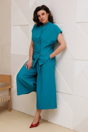 Бренд белорусской женской Anastasia представляет костюм двойку. Костюм женский 2-х предметный (жилет, юбка-брюки) из костюмной ткани станет отличным дополнением к Вашему гардеробу. Подойдет для повседневной носки (работа, офис, прогулки). Достаточно дополнить его соответствующими предметами из вашего гардероба: блузка, майка, водолазка, гольф, свитер, лонгслив, свитшот. Или акссесуарами: ремешок или пояс. Жилет полуприлегающего силуэта, со спущенным плечом. Может быть самостоятельным элементом гордерба. Застежка двухбортная. Воротник цельнокроеная стойка. По полочке идет грудовая выточка из бокового шва, по спинке средний шов. Трендовая юбка-брюки. По передней части идут встречные складки (центральная и две боковые). Пояс отрезной, по бокам резинка. Застежка – потайная молния по шву сидения по спинке. По бокам - карманы. По низу брюк – широкая подгибка. Акцентный элемент- пуговицы. Благодаря своему крою и фасону костюм подчеркивает женственные формы и скрывает то, что должно быть незаметным. Это повседневный вариант на каждый день для занятий в школе или для офиса, на работу или на прогулку. Наденьте его на деловую встречу, официальное мероприятие, школьное торжество. Модель подойдёт для образа в университет или колледж. Одежда для женщин по отличным ценам и высокого качества - это Anastasia! Добавляете нас в любимые бренды и вы всегда будете в курсе всех акций и новинок! Хороших покупок от «Анастасия». Длина по спинке (48-52)-72см, (54-58)-74 см. Длина юбки-брюк (48-58) - 85см.