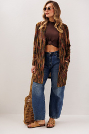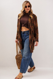 Женский кардиган – идеальный выбор для тех, кто ценит комфорт, стиль и универсальность. Эта вязаная кофта предназначена для женщин, желающих всегда выглядеть модно, будь то осень, зима, весна или лето. Благодаря своему крою, изделие подходит как для повседневной носки, так и для особых случаев, подчеркивая вашу индивидуальность и женственность. Лёгкий трикотажный материал делает эту вещь отличным вариантом для теплого времени года, обеспечивает необходимое тепло в прохладную погоду. Кофта отлично садится на любые типы фигуры в стиле оверсайз, идеально подходит для беременных. Модель выполнена в трендовых цветах 2025 года, что гарантирует актуальность вашего гардероба. Этот женский кардиган легко комбинируется с другой одеждой – от строгих брюк до легких платьев, подходит для офиса и прогулок. Особое внимание уделено деталям и аккуратной отделке. Чтобы ничего не сковывало ваши движения, а для практичности - накладные карманы и пояс. Нарядная и женственная модель подчеркивает достоинства фигуры и делает образ завершенным. Главное конкурентное преимущество – сочетание качества премиальной вязки и современного дизайна, что выделяет этот товар среди других кофт и кардиганов на рынке. Если вы ищете стильные, трендовые и одновременно практичные решения, выбирайте этот вариант – он создан для женщин, которые ценят комфорт и индивидуальность. Длина по спинке: (50-54)-88см, (56-60) -92см, Длина рукава: (50-54)-62см, (56-60): 64см