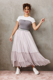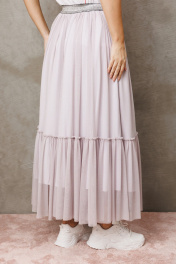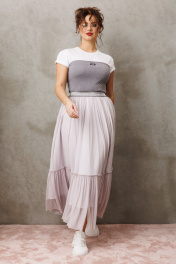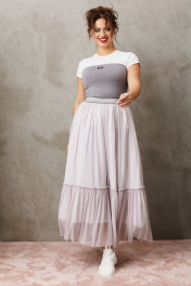 Юбка макси от бренда Anastasia, идеальный для любого случая. Юбка макси из 2-х видов ткани: верх с отрезным валаном из фатина, подкладка юбка солце из шифона. Пояс на декоративной резинке. Фасон универсален, а использование резинки на поясе повышает комфортность носки, позволяя юбке адаптироваться под индивидуальные особенности фигуры. Юбку легко сочетать с различными верхами: топ, блузка, футболка, кружевной жакет, свитер или жакет из тексиля - все это позволит создавать различные образы на разные случаи. Длина юбки: 90 см