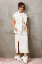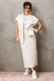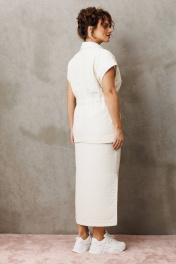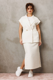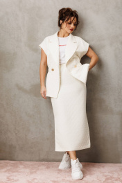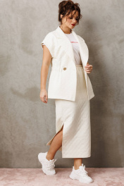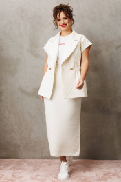 Бренд белорусской женской одежды больших размеров Anastasia представляет костюм двойку. Костюм женский 2-х предметный (жилет, юбка) из стеганной ткани станет отличным дополнением к Вашему гардеробу. Подойдет для повседневной носки (работа, офис, прогулки). Достаточно дополнить его соответствующими предметами из вашего гардероба: блузка, майка, водолазка, гольф, свитер, лонгслив, свитшот. Жилет прямого силуэта, со спущенным плечом. Может быть самостоятельным элементом гордерба. Застежка двухбортная, воротник английского типа. По полочке идет грудовая выточка из бокового шва, по спинке средний шов, по талии кулиска-резинка, по бокам -карманы. Юбка-макси, зауженная к низу, по бокам разрезы. Пояс отрезной на резинке. Благодаря своему крою и фасону костюм подчеркивает женственные формы и скрывает то, что должно быть незаметным. Это повседневный вариант на каждый день для занятий в школе или для офиса, на работу или на прогулку. Наденьте его на деловую встречу, официальное мероприятие, школьное торжество. Модель подойдёт для образа в университет или колледж. Этот предмет одежды подчеркнет вашу элегантность и сделает образ более женственным. Одежда для женщин больших размеров и не только, по отличным ценам и высокого качества - это Anastasia! Добавляете нас в любимые бренды и вы всегда будете в курсе всех акций и новинок! Хороших покупок от «Анастасия»Длина по спинке (48-52)-70см, (54-58)-71 см. Длина юбки (48-58) - 88см.