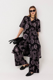 Костюм женский 2-х предметный (блузка, брюки) из легкой хлопковой ткани. Шикарный, стильный женский костюм от бренда Anastasia, идеальный для любого случая. Этот костюм сочетает в себе элегантность и комфорт, что делает его подходящим как для деловых встреч или домашней одежды, так и для праздничных мероприятий. лузка длинная, прямая. По переду нагрудные выточки с проймы. По боковым швам разрезы. Воротник на отрезной стойке, застежка планка на петли и пуговицы.Рукав втачной одношовный. Брюки-палаццо прямые широкие, пояс на резинке, по низу широкая подгибка. Имеет оригинальный и современный крой, придающий образу особую изысканность. Брюки палаццо, благодаря своему поясу на резинке, могут растягиваться до большого размера, поэтому подходят для любой фигуры, будь то девочка-подросток или взрослая женщина. Длина блузки: (50-54)-112 см., (56-62)-114 см. Длина рукава: (50-54)-32 см., (56-62)-34 см. Длина брюк: (50-54) - 102 см, (56-62) - 105 см