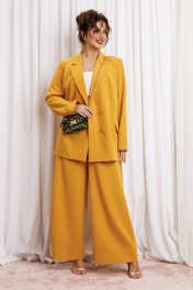 Оригинальный женский костюм от бренда Anastasia, идеальный для любого случая. Этот костюм сочетает в себе элегантность и комфорт, что делает его подходящим как для деловых встреч или прогулок. Костюм состоит из жакета и брюк. Жакет прямого силуэта без подкладки, с бочком и грудовой выточкой по полочке, по спинке вставка из кружева и завязки. Застежка двубортная, карман клапан "обманка". Рукав вточной двухшовный. Воротник пиджачного типа. Брюки- палаццо. Пояс на резинке. По низу широкая подгибка. Стильный костюм отлично подойдет для долгих прогулок или для работы, для офиса. Отдельный части костюма легко будут сочетаться с вещами из Вашего гардероба. Модель можно отнести к стилю кэжуал. Костюм можно носить с туфлями, кроссовками или ботинками. Обязательно добавьте наш бренд в избранное и следите за новинками, распродажами, скидками и акциями! Хороших покупок от «Анастасия». ВНИМАНИЕ! пуговицы могут отличаться от фото. Длина (по спинке):(48-52)- 73см, (54-56)-74 см, (58-60)-75см. Длина рукава: (48-52)- 62см, (54-56)-63 см, (58-60)-64см.. Длина брюк: (48-54)- 100см, (56-60)- 103см