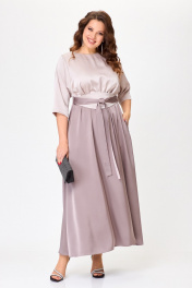 Нарядное платье макси из атласа с поясом кушак ANASTASIA MAK 1229 бежевый+капучино