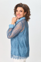 Демисезонный кружевной комплект блуза и топ с воротником ANASTASIA MAK 1231 голубой - фото 6