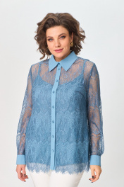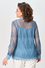 Демисезонный кружевной комплект блуза и топ с воротником ANASTASIA MAK 1231 голубой - фото 2