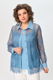 Демисезонный кружевной комплект блуза и топ с воротником ANASTASIA MAK 1231 голубой - фото 1