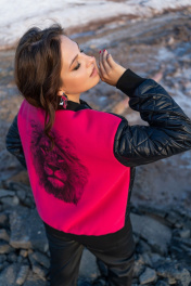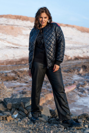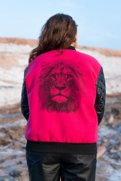 Куртка-бомбер женская модная и современная, из ромбовидной стёганной плащевки, спинка из пальтовой ткани на синтепоне с печатью "лев" с застёжкой на металлическую тесьму-молнию, с боковыми карманами на металлические молнии, на синтепоне 150 ГР, на подкладке. стойка манжеты и низ куртки выполнены из плотного довяза.