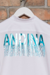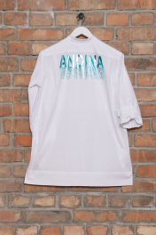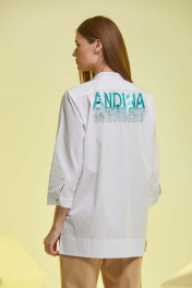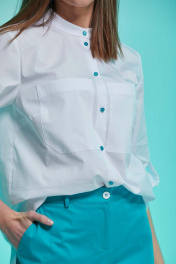 Блуза из хлопка с нагрудными карманами и принтом Andina 102 белый+фольга_бирюза