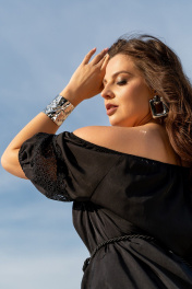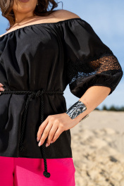 Блуза реглан с съёмным поясом из текстиля Andina 123 черный