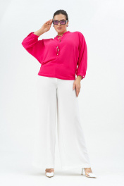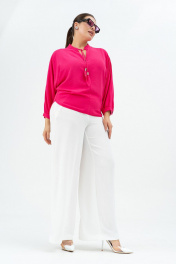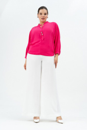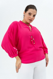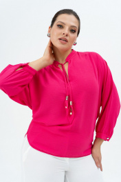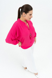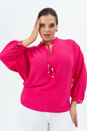 Блузка женская как для праздников так и для любого мероприятия , покроя "летучая мышь" , со стойкой на которую настрочена завязка с декоративными элементами , со швом по центру полочки, рукава цельнокроёные, застёгивающиеся на петлю и пуговицу. Низ блузки по спинке длиннеее, по полочке короче.