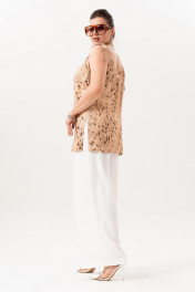 Блузка-туника выполненное из приятного к телу материала 10% вискозы премиум класса. Особенностью данной модели являются завязывающиеся бретели, которые позволяют легко регулировать посадку по фигуре. Дизайн туники дополнен нагрудной вытачкой , и игривыми разрезами по бокам. Эта туника станет отличным выбором как для повседневной носки, так и для особых случаев.