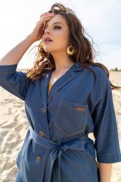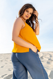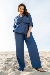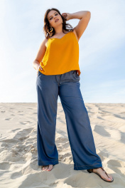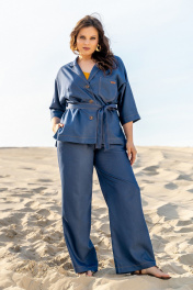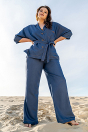 Тройка: брючный костюм с топом и жакетом из текстиля Andina 3003 деним/шафран