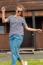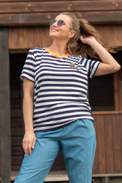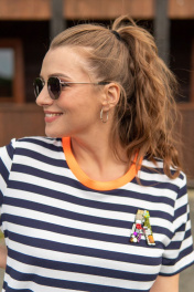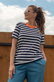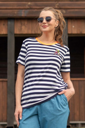 Блуза в тельняшку с ярким довязом и ручным декором Andina 404-1 полоска_сине-белая