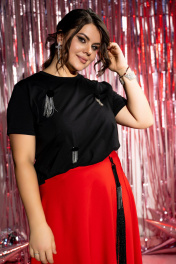 Женская современная из хлопкового премиального трикотажного полотна блузка, с пристёгивающим декором. Блузка с короткими рукавами, горловина с притачной бейкой.