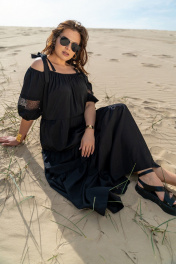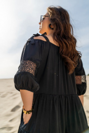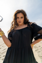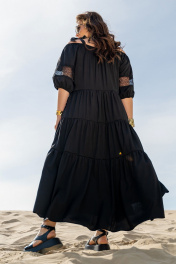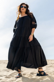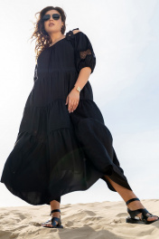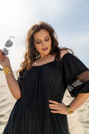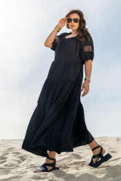 Легкое платье на бретелях с кружевными вставками и воланами Andina 829 чёрный