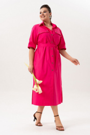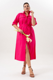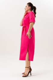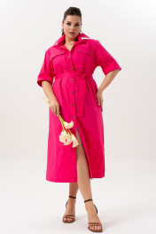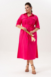 Платье с воротником на стойке, с центральной бортовой застёжкой на петли и пуговицы, на полочке нагрудные карманы с клапанами, застёгивающиеся на петли и пуговицы, со сьёмным поясом, с втачными рукавами 3/4.в боковых швах обработаны карманы. спинка цельная со складкой в верхней части спинки. по бокам разрезы.