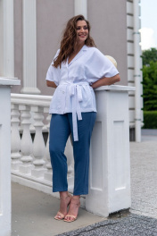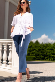 Костюм брючный из вискозы: жакет и зауженные брюки Andina 917 белый+индиго