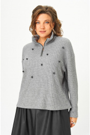 Вязаный женский джемпер с воротником-стойкой на молнии - это идеальный выбор для создания стильного и уютного образа в прохладное время года. Изготовленный из мягкого трикотажа, в состав которого входит смесовая вискоза, этот джемпер приятно облегает тело и обеспечивает максимальный комфорт. Свободный прямой крой со спущенной линией плеча создает расслабленный силуэт, который идеально подходит для удобной носки и позволяет свободно двигаться. Длинные рукава добавляют изделию изысканности и стиля, а также защищают от холода. Воротник-стойка на молнии не только добавляет оригинальности, но и позволяет регулировать тепло, что делает этот джемпер универсальным элементом гардероба, а оригинальный декор по переду придаёт образу праздничный вид. Он отлично сочетается как с брюками, так и с юбками, позволяя создавать разнообразные образы для разных случаев.
