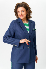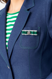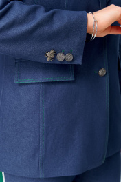 Красивый женский джинсовый жакет не оставит равнодушной ни одну модницу! Полуприлегающий классический покрой подчеркнет достоинства фигуры, а плотная ткань обеспечит комфорт в любой ситуации. Он идеально подойдет для создания разнообразных нарядов на каждый день благодаря универсальности и стильному дизайну. Жакет с застёжкой спереди на петли и пуговицы, с пиджачным воротником и втачными двухшовными рукавами со шлицами и акцентными пуговицами. По переду выполнены боковые карманы с клапанами и нагрудный накладной карман с съёмным дизайнерским украшением, спинка со швами.