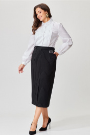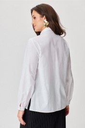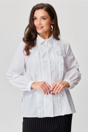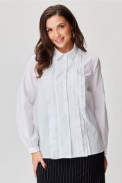 Блузка женская классическая прямого силуэта. Перед с вертикальными декоративными бейками, с застёжкой на петли и пуговицы. Рукав втачной одношовный со сборкой по низу, на притачном манжете. Воротник рубашечный на стойке