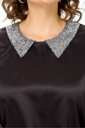 Классическая женская блузка остается неизменной классикой, неподвластной времени. Нарядная блузка выполнена из атласа с отделочным воротником и манжетами из пайеток, подойдет не только для праздничного мероприятия, но и для повседневной носки. Черная блузка с рукавом длины ¾ это всегда беспроигрышный вариант, поможет скрыть любые недостатки фигуры и подчеркнуть её достоинства. Свободный укороченный крой блузки не сковывает движения. Классический цвет делает модель универсальной и любимой вещью вашего гардероба.