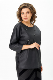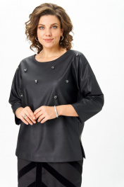 Стильная блузка из экокожи способна сделать ваш гардероб еще более модным и разнообразным. Отлично подойдет как на каждый день, так и для праздника, ведь ее легко сочетать. Модель с рукавом ¾, свободный прямой крой подойдет для любой фигуры, подчеркнёт достоинства и скроет недостатки. Все швы закрыты подкладкой, а перед украшен декоративными камнями, что придает изделию дорогой вид.