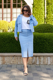 Голубой джинсовый жакет с кокетками и поясом Andina city 7003 голубой