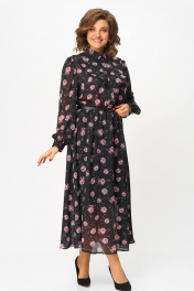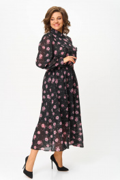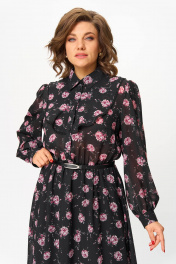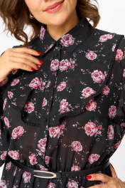 Платье из приятного шифона с цветочным принтом станет идеальным выбором для любого случая. Длина макси и свободный крой создают элегантный силуэт, а волан с кружевом добавляет женственности и романтичности. Модель с длинными рукавами с манжетами по низу, с воротником на стойке и застежкой спереди на пуговицах удобна в носке и подчеркивает достоинства фигуры, а ремешок из экокожи подчёркивает линию талии. Длина платья 134 см.