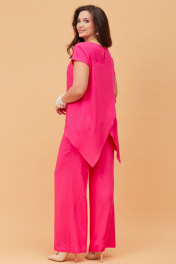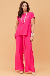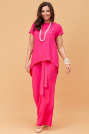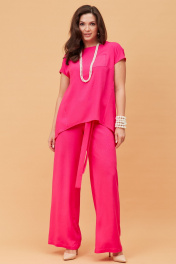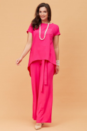 Летний розовый костюм из текстиля с блузкой и брюками Andina city 9017 фуксия
