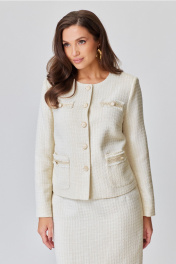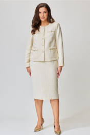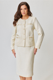 Двухпредметный костюм жакет и юбка со шлицей Andina city 9052-2 молочный