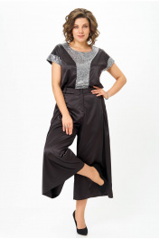 Комплект женский нарядный, состоит из юбки-брюк и топа. Юбка-брюки из атласа, это сочетание стиля и комфорта, они предназначены для особых моментов вашей жизни. Застежка спереди на молнию и резинка по талии обеспечивает удобство в носке, а широкие штанины зрительно вытягивают силуэт, подчёркивая достоинства и скрывая несовершенства фигуры. Топ со спущенной линией плеча, декорированный вставками из пайеток– это идеальный выбор для тех, кто ищет стильное и практичное решение для праздничных и офисных нарядов. Декоративные вставки добавляют элегантности и праздничности образу, создают уникальный и запоминающийся вид, подчеркивая женственность и изысканность.