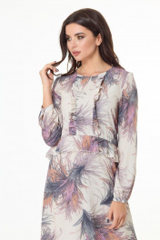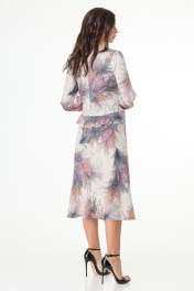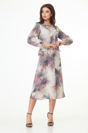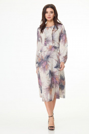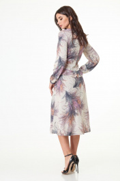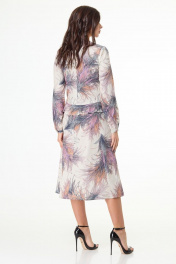 Лаконичное платье длины миди из принтованной плательной ткани завоюет одно из центральных мест вашего гардероба. Платье полуприлегающего силуэта, длиной ниже колена, отрезное по талии с фигурной линией подреза - спинка плавно удлинена относительно переда. На передней части оформлены рельефные подрезы с декоративным рюшами в них. По линии подреза на талии обработан волан. Низ платья слегка расклешенного силуэта. Рукава втачные, длинные, собраны на манжету по низу. Линия горловины округлой формы. Платье подходит как для повседневной носки так и для выхода в свет. Замеры: Рост фотомодели – 171 см. Размер фотомодели – 44. ОГ-обхват груди; ОТ-обхват талии (резинка собрана/растянута); ОБ-обхват бедер; ДИ-длина изделия (от выреза горловины по спинке); ДР-длина рукава. Размер 44 ОГ-92; ОТ-42/70; ОБ-106; ДИ-105; ДР-64 Размер 46 ОГ-96; ОТ-46/74; ОБ-110; ДИ-106; ДР-64 Размер 48 ОГ-100; ОТ-50/78; ОБ-114; ДИ-107; ДР-65 Размер 50 ОГ-104; ОТ-54/82; ОБ-118; ДИ-108; ДР-66 Размер 52 ОГ-108; ОТ-58/86; ОБ-122; ДИ-108; ДР-67