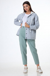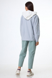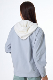 Жакет из джинсовой ткани, прямого силуэта, слегка зауженного книзу. На передней части выполнены подрезные кокетки, в швах притачивания обработаны внутренние карманы с клапанами. На нижних частях переда выполнены рельефные швы, а так же прорезные карманы с листочками. На спинке обработана притачная кокетка, в нижней части выполнены вытачки, формирующие О-образный силуэт. Жакет на притачном поясе по низу. Линия плеча удлиненная, рукава рубашечного типа, двухшовные, с вытачками, на притачной манжете. Воротник отложной, со съемным трикотажным капюшоном. Застежка центральная на петли и металлические пуговицы-болты. Составьте свой стильный образ в комплекте с брюками 1041. Замеры: Рост фотомодели 171 см. Размер фотомодели – 44. ОГ-обхват груди; ОТ-обхват талии; Об-обхват бедер; ДИ-длина изделия; ДР-длина рукава. Размер 46 ОГ- 100; ОТ-100; ОБ-100; ДИ-70; ДР-56 Размер 48 ОГ- 104; ОТ-104; ОБ-104; ДИ-71; ДР-57 Размер 50 ОГ- 108; ОТ-108; ОБ-108; ДИ-72; ДР-58 Размер 52 ОГ- 112; ОТ-112; ОБ-112; ДИ-73; ДР-59